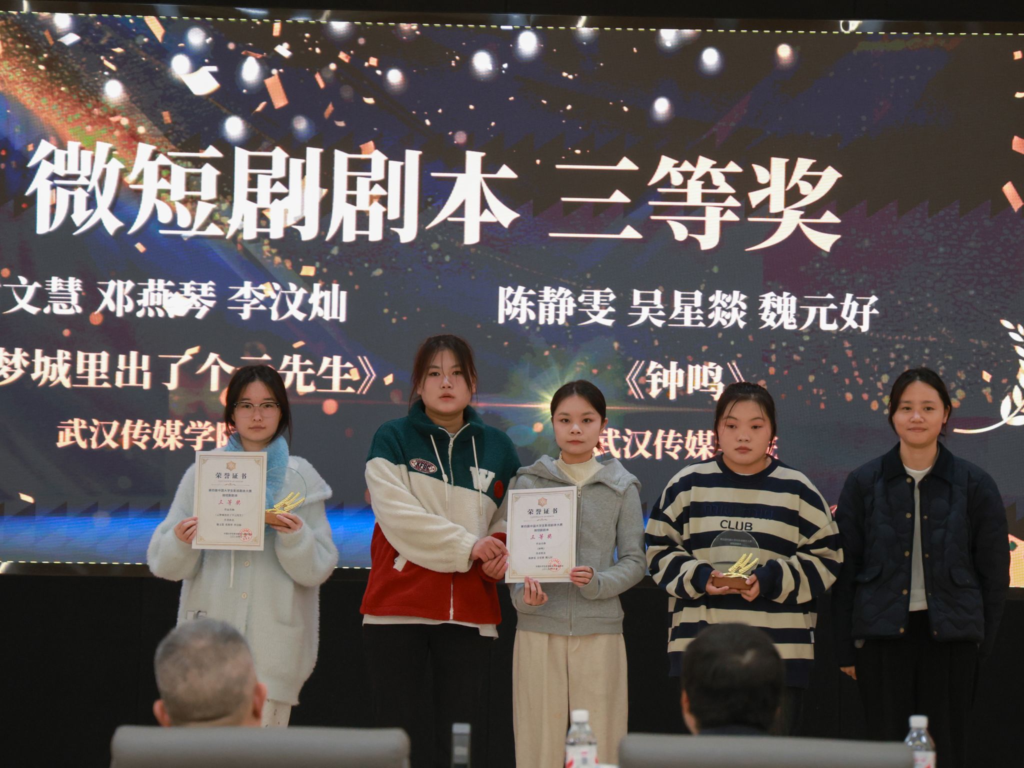 颁奖环节集中揭晓了各赛道奖项:电影剧本赛道上,西北政法大学王嘉潞团队《帷幕之后》获一等奖,厦门大学李姝锦《28号绿》、澳门科技大学林灏《你瞒我瞒》获二等奖;连续剧与戏剧剧本赛道中,华中师范大学蒋达辉《人生如煮》摘得一等奖,武汉传媒学院蔡依林团队《凤眉的新生活》获二等奖;微短剧赛道与湖北省“视听长江”微短剧剧本大赛联动,北京中医药大学宋钕帆《蕲艾沉香令》获二等奖,武汉传媒学院谢文慧团队《云梦城里出了个云先生》、王国智《渡河》分获三等奖与优秀奖。